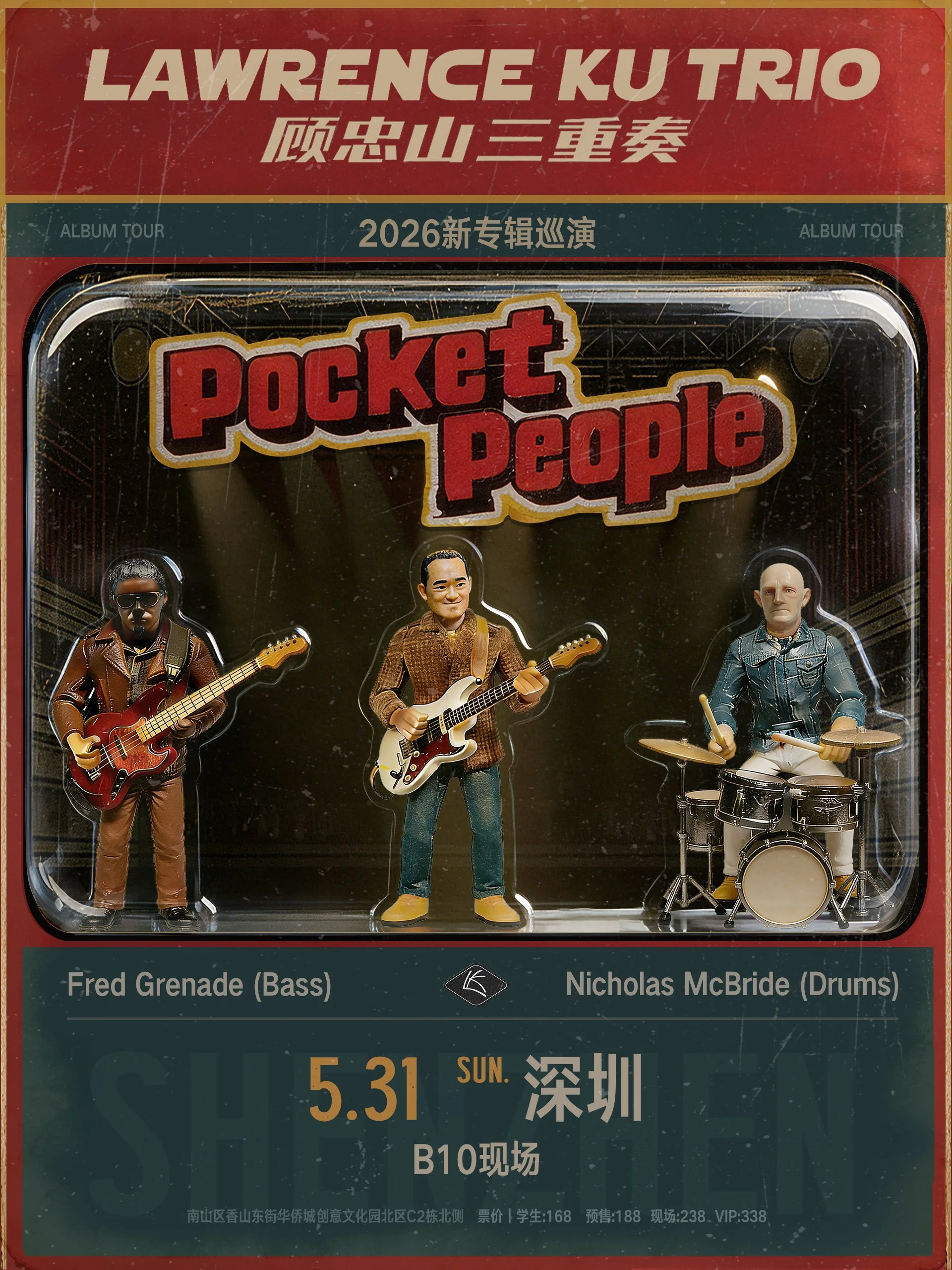 吉他演奏家顾忠山三重奏新专辑巡演来了!2026 年 5 月 31 日,顾忠山 Lawrence Ku携三重奏金牌搭档贝斯手福来得 Fred Grenade、鼓手尼克 Nicholas McBride, 于深圳 B10 现场带来✨全新专辑 Pocket People(《同袋中人》)✨ 的现场演出!